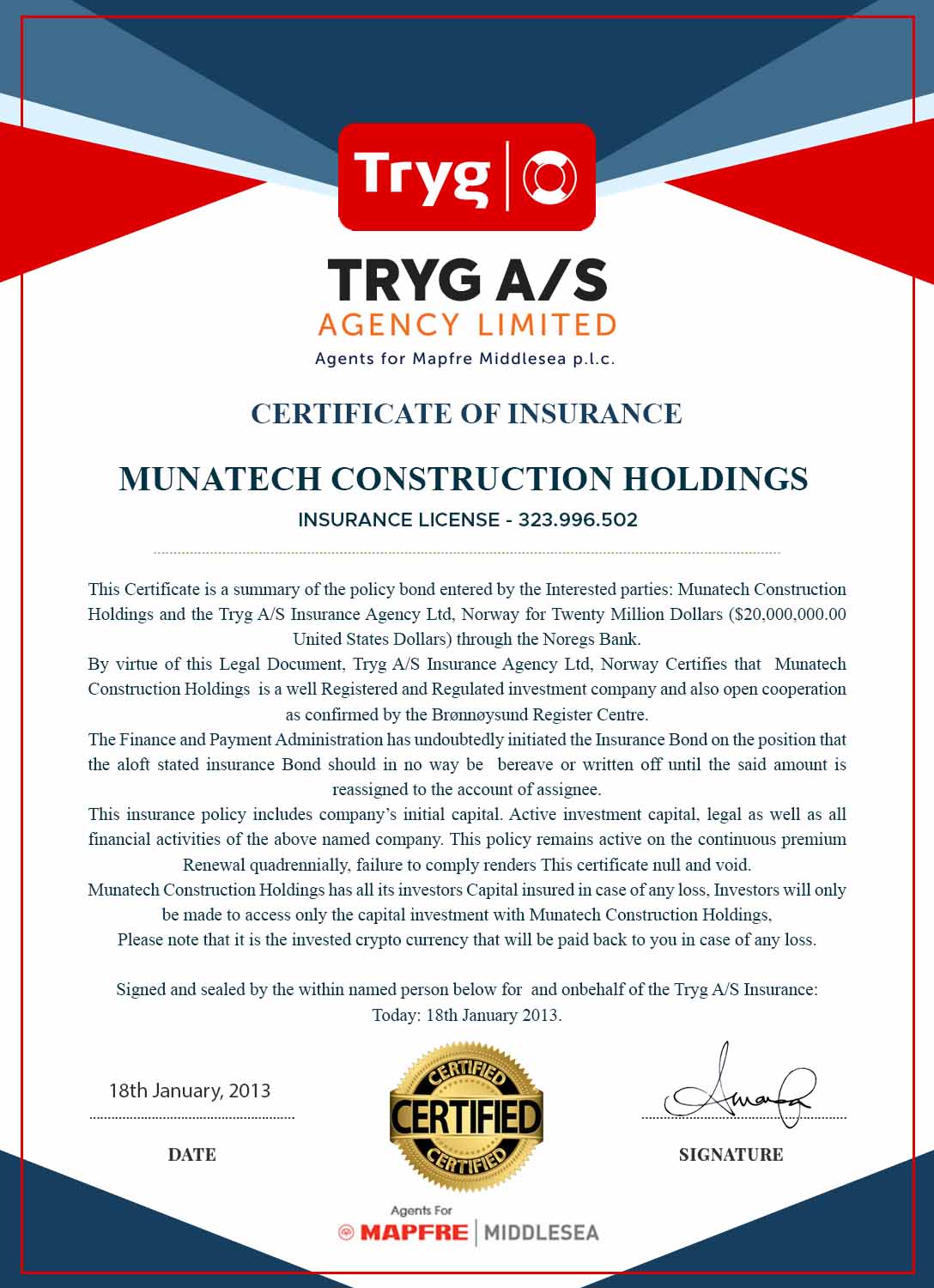 Munatech construction holdings , champions the production of solar power and energy, electronical appliances, and real estate management. The holdings significantly affect positively, to Norway gross domestic products (GDP).